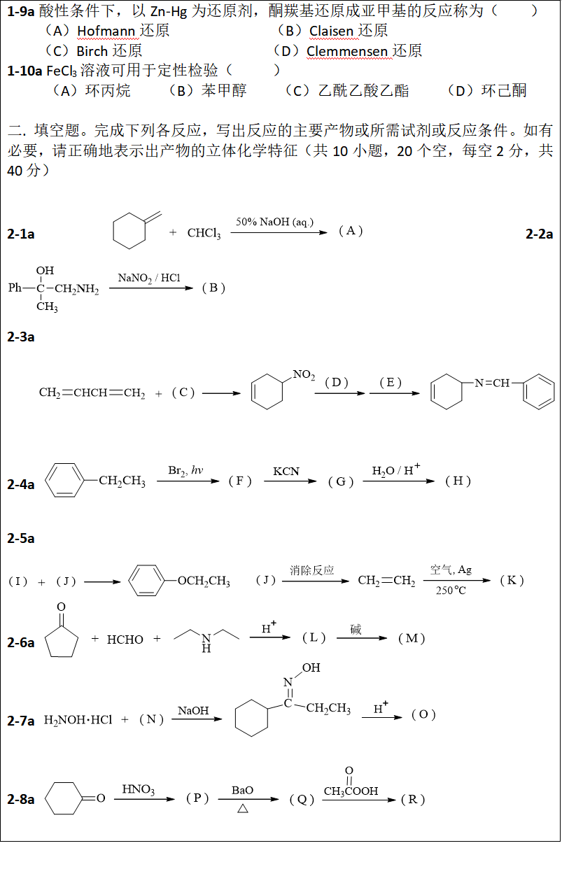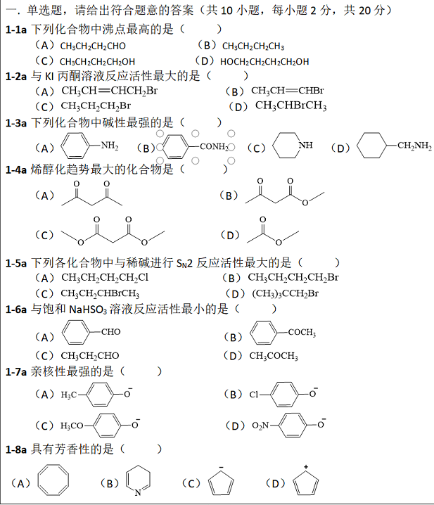 考试科目名称:812有机化学A