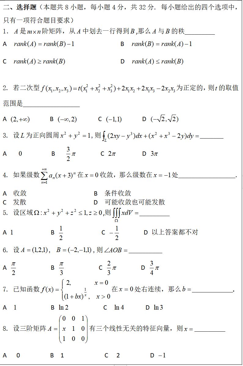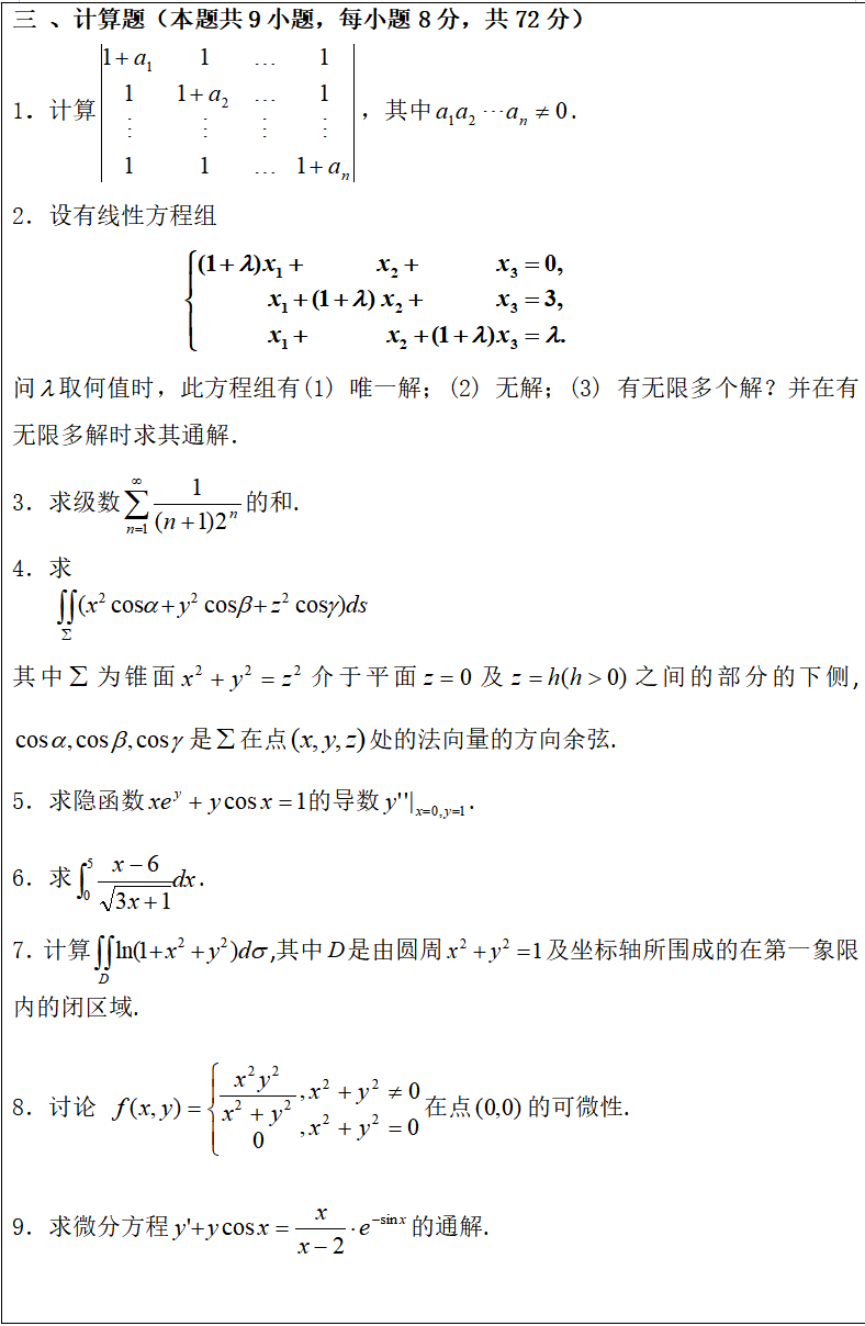 考试科目名称:601 高等数学 (A卷)