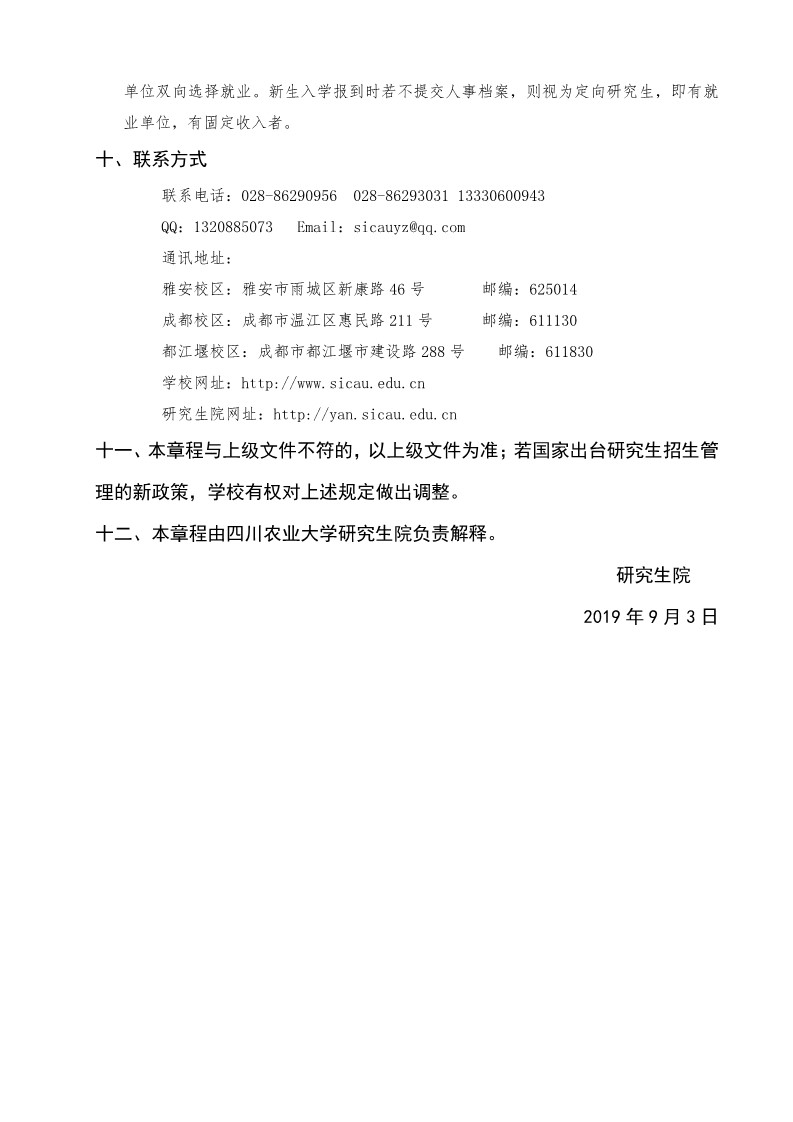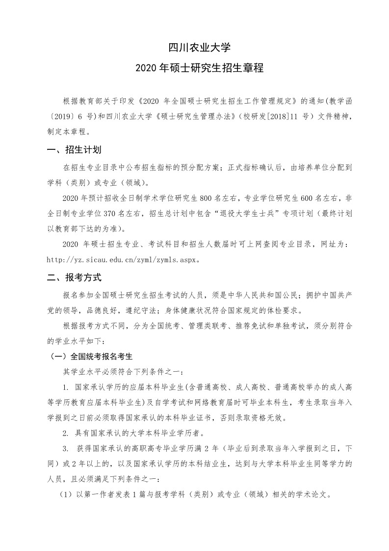 四川农业大学考研辅导班:四川农业大学2020年硕士研究生招生章程