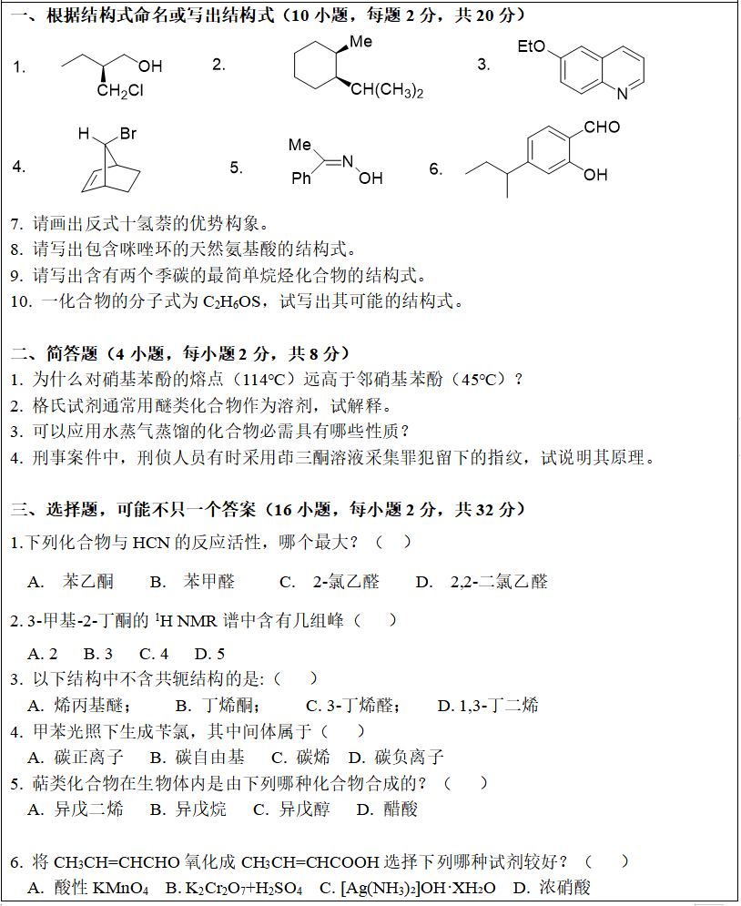 暨南大学考研辅导班:暨南大学2019年818有机化学B》A卷考研真题