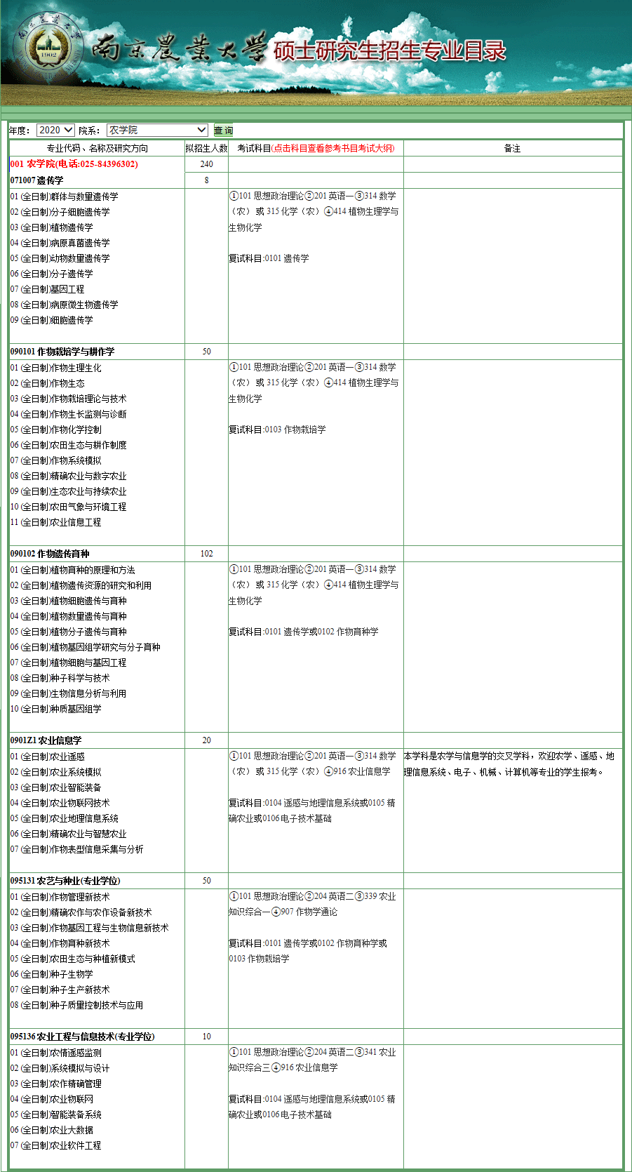 南农考研辅导班:2020年南京农业大学农学院考研专业目录