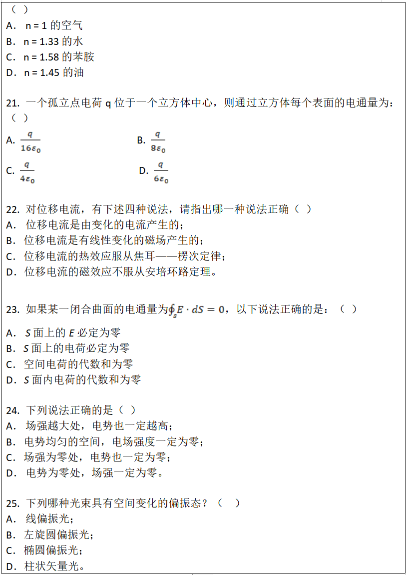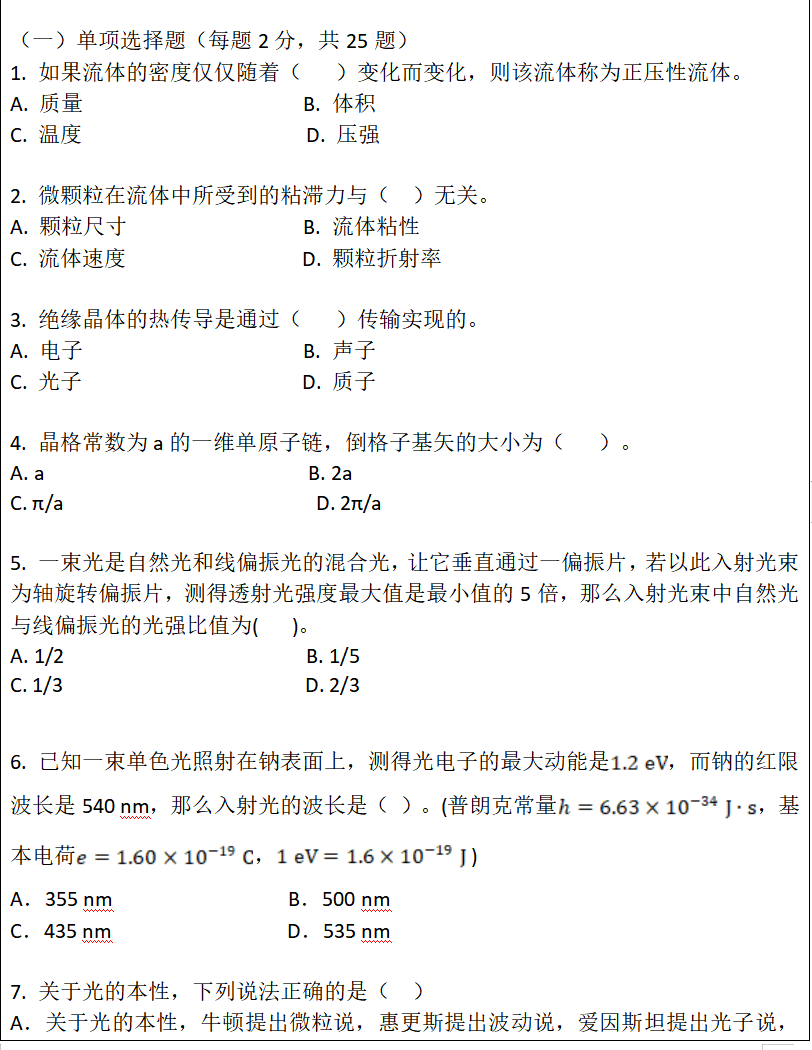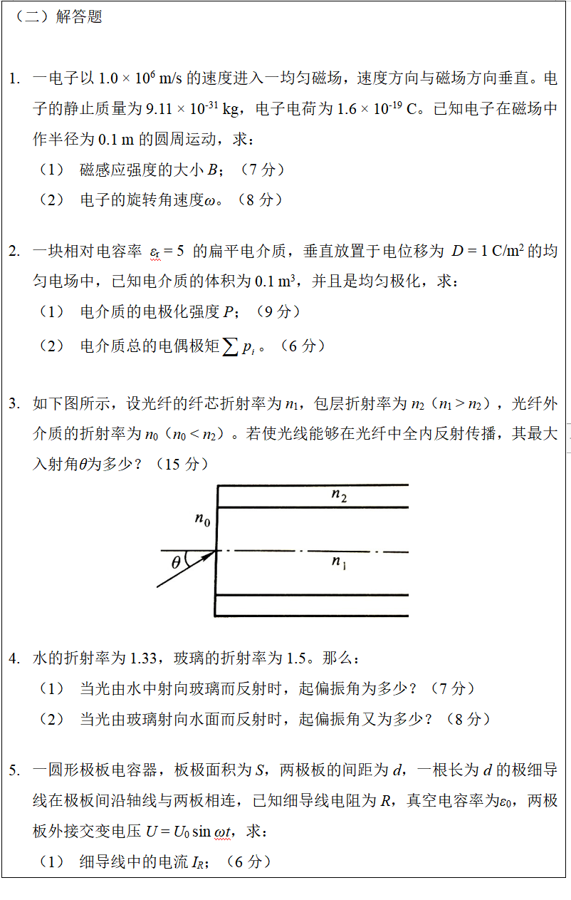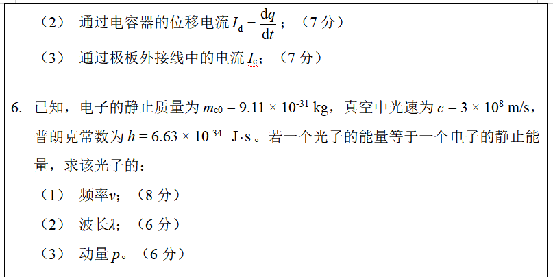 考试科目名称及代码:基础物理846