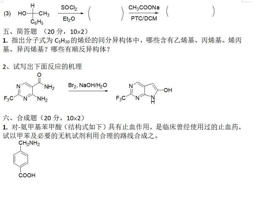 二、掌握:碱催化卤仿反应机理;醌的性质;烯酮的反应;醌的命名