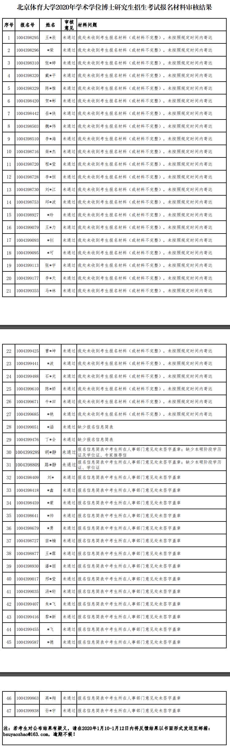 北体考研辅导班:北京体育大学2020年学术学位博士研究生招生考试资格审核未通过名单公示