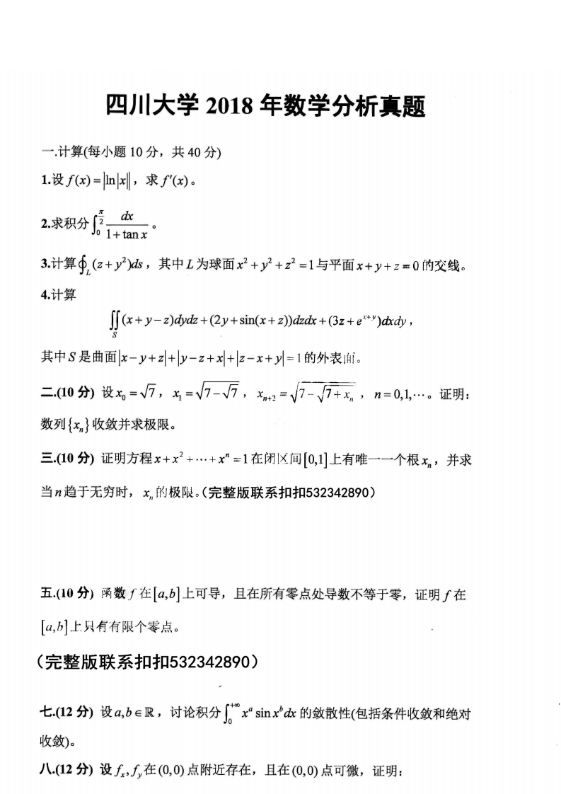 川大考研辅导:四川大学数学分析2018年考研真题及答案详解
