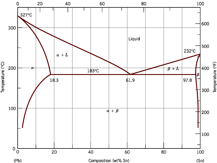 图1 Pb-Sn二元共晶相图
