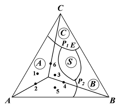 如图为ABC三元系统相图。