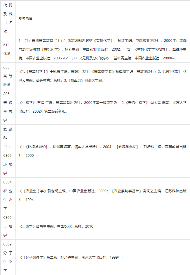 南农考研辅导班:2020年南京农业大学0713生态学考研参考书目