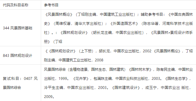 南农考研辅导班:2020年南京农业大学0953风景园林考研参考书目