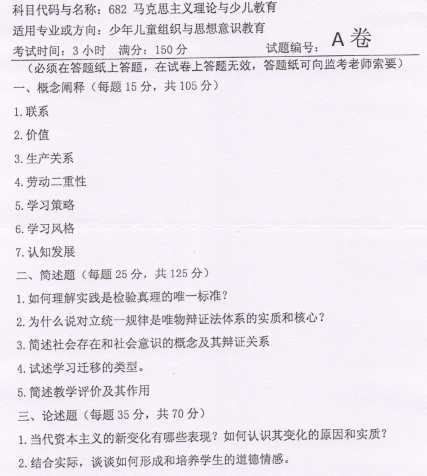 河师大考研辅导班:2018河南师范大学考研682马克思主义理论与少儿教育真题