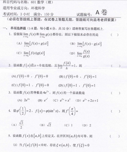 河师大考研辅导班:2018年河南师范大学环境科学考研601数学(理)真题