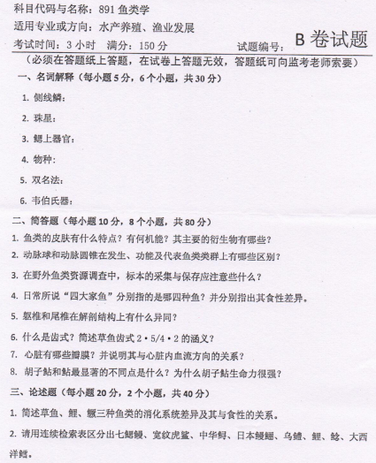 河师大考研辅导班:2018年河南师范大学考研891鱼类学真题
