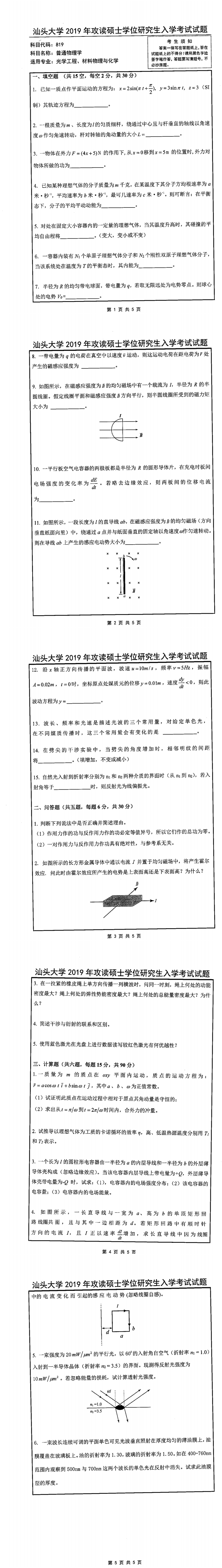 汕头大学考研辅导班:2019年汕头大学考研819普通物理学真题