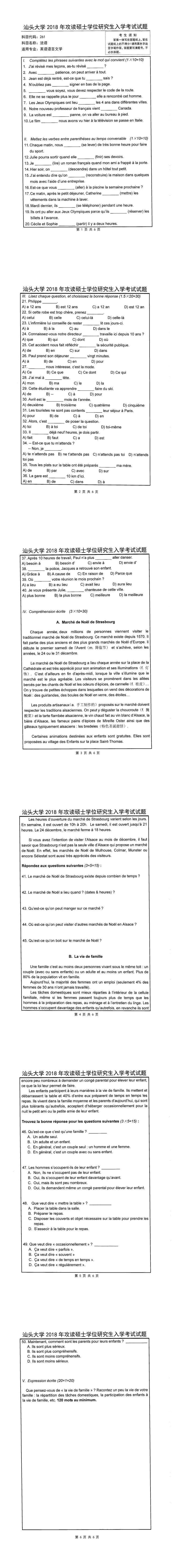 汕头大学考研辅导班:2018年汕头大学考研261法语真题