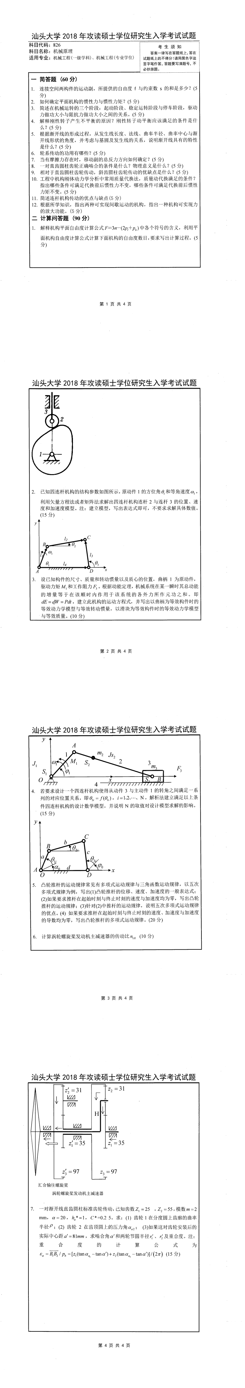 汕头大学考研辅导班:2018年汕头大学考研826机械原理真题