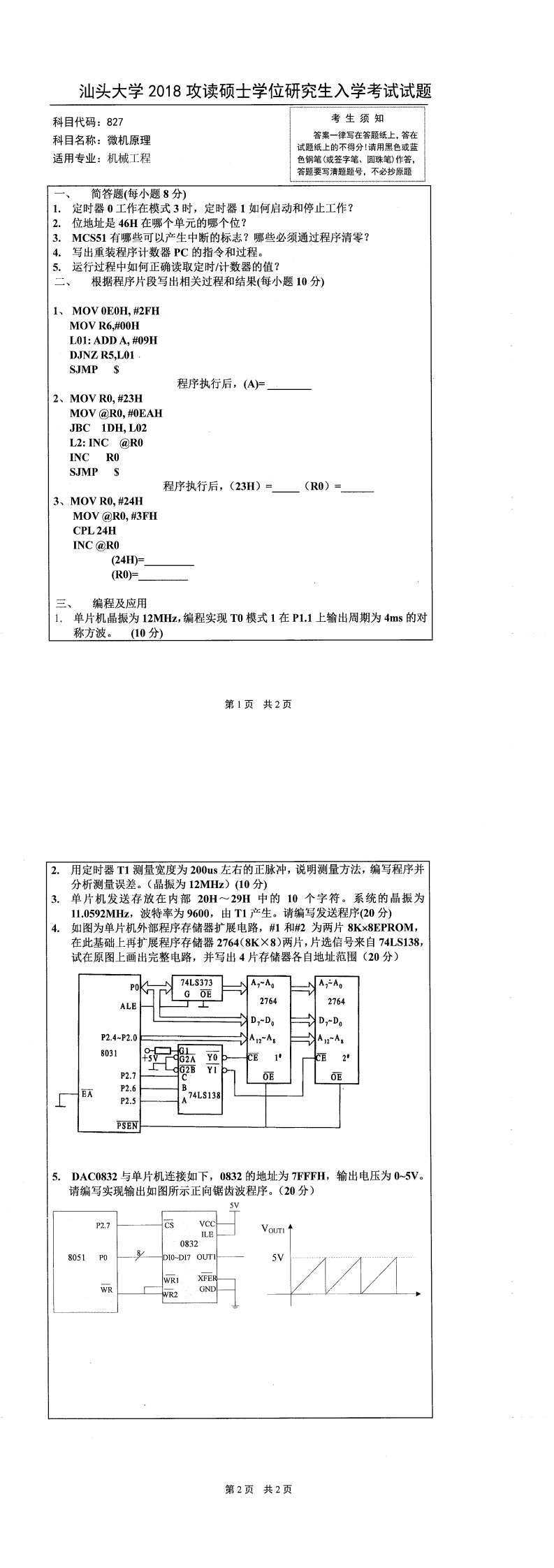 汕头大学考研辅导班:2018年汕头大学考研827微机原理真题