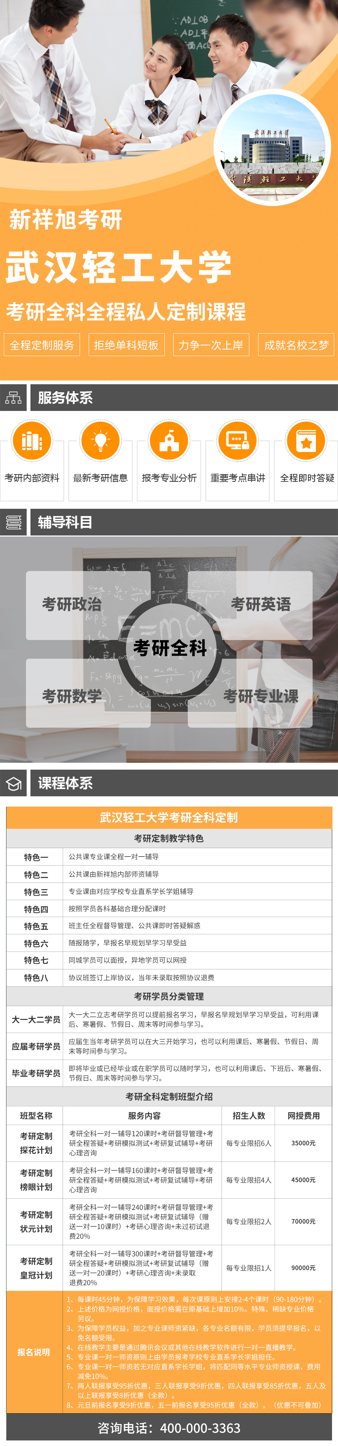 课程描述:新祥旭考研专注武汉轻工大学考研全科定制辅导,以效果为导向,以上岸为目标,为广大考研学生提供个性化、定制化、多对一的考研全科全程辅导,考研公共课和考研专业课皆为一对一辅导,全国各地考研学生可以面授也可以网授,力争让考研学生顺利考取武汉轻工大学攻读硕士研究生。
