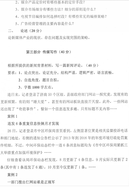 山东师范大学考研辅导班:2017年山东师范大学考研805传媒实务综合真题