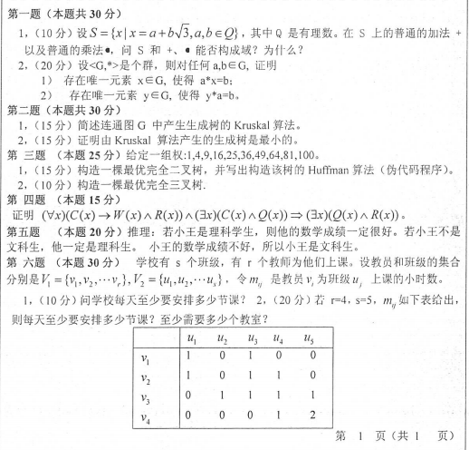 山东师范大学考研辅导班:2018年山东师范大学考研840离散数学真题
