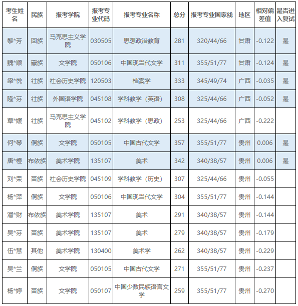 福建师范大学考研辅导班:2019年“少数民族高层次骨干人才计划”考生情况表