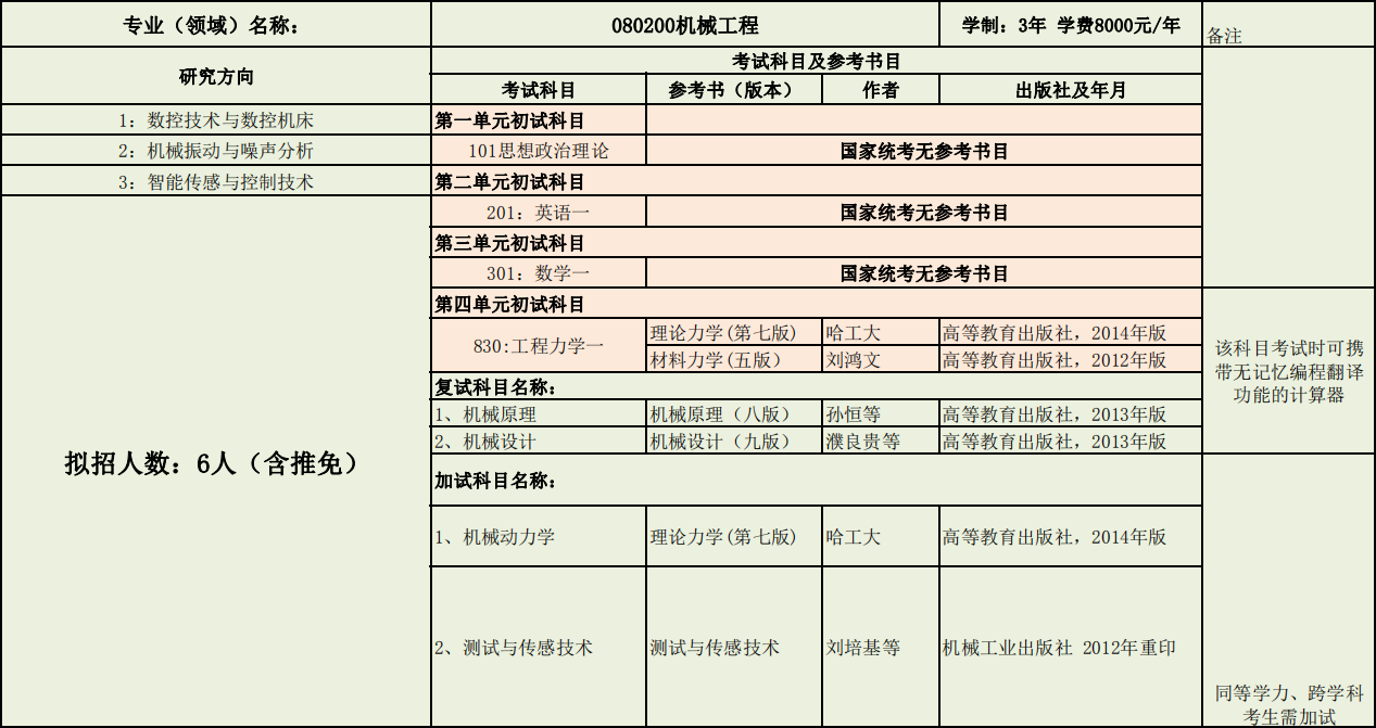 延边大学工学院2020年度招收攻读硕士学位研究生专业目录表(专业型)
