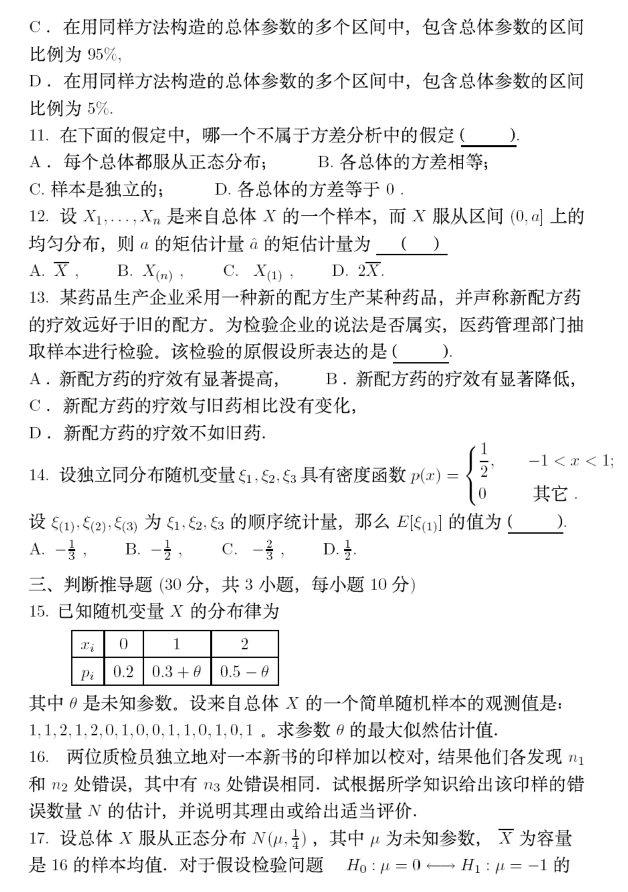 试卷满分为150分。其中概率论部分30分,统计学部分 120分。