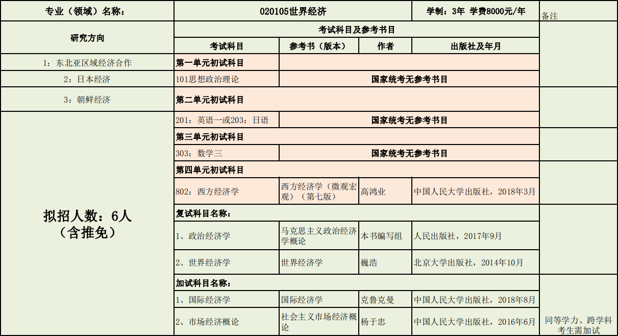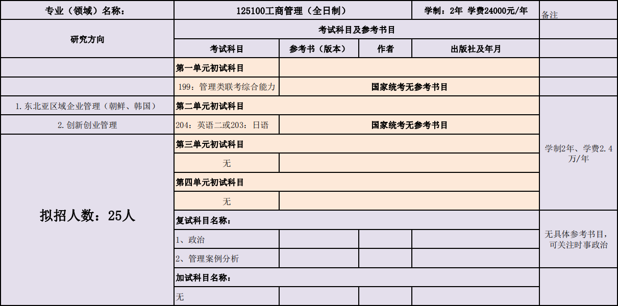 延边大学经济管理学院2020年度招收攻读硕士学位研究生专业目录表(专业型)
