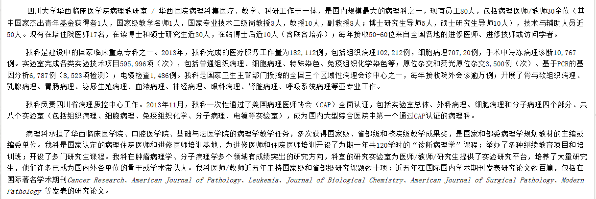 2020四川大学华西临床医学院临床病理学、病理学考研学科介绍
