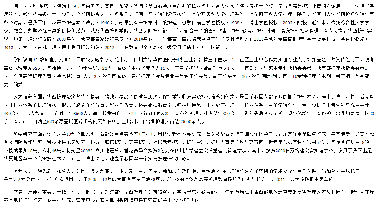 2020年四川大学华西临床医学院护理学考研学科介绍