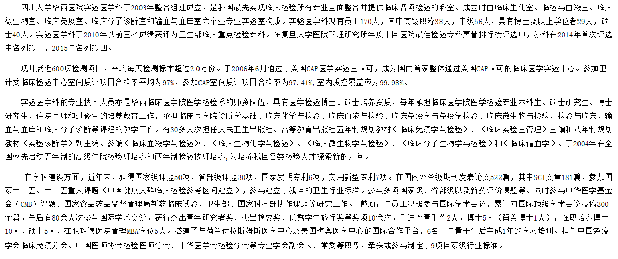 2020年四川大学华西临床医学院临床检验诊断学考研学科介绍