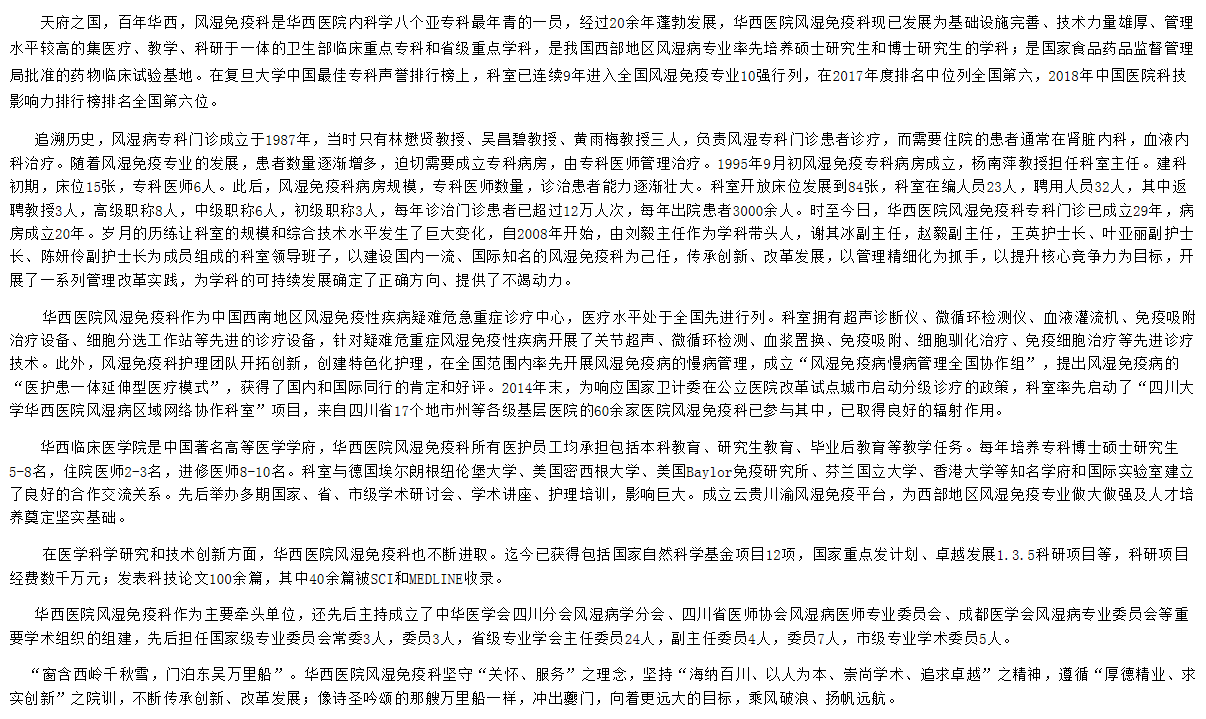 2020年四川大学华西临床医学院内科学(风湿免疫)考研学科介绍
