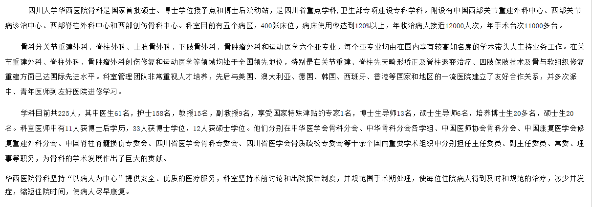 2020年四川大学华西临床医学院外科学(骨科)考研学科介绍