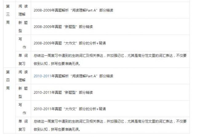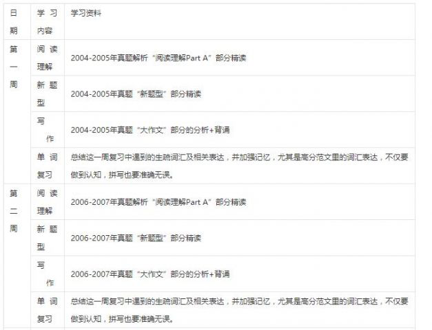 1、完成2004-2011年真题"完型"部分的学习,掌握其中所有词汇、短语及语法点,重点突破词汇间的辨析及搭配关系;