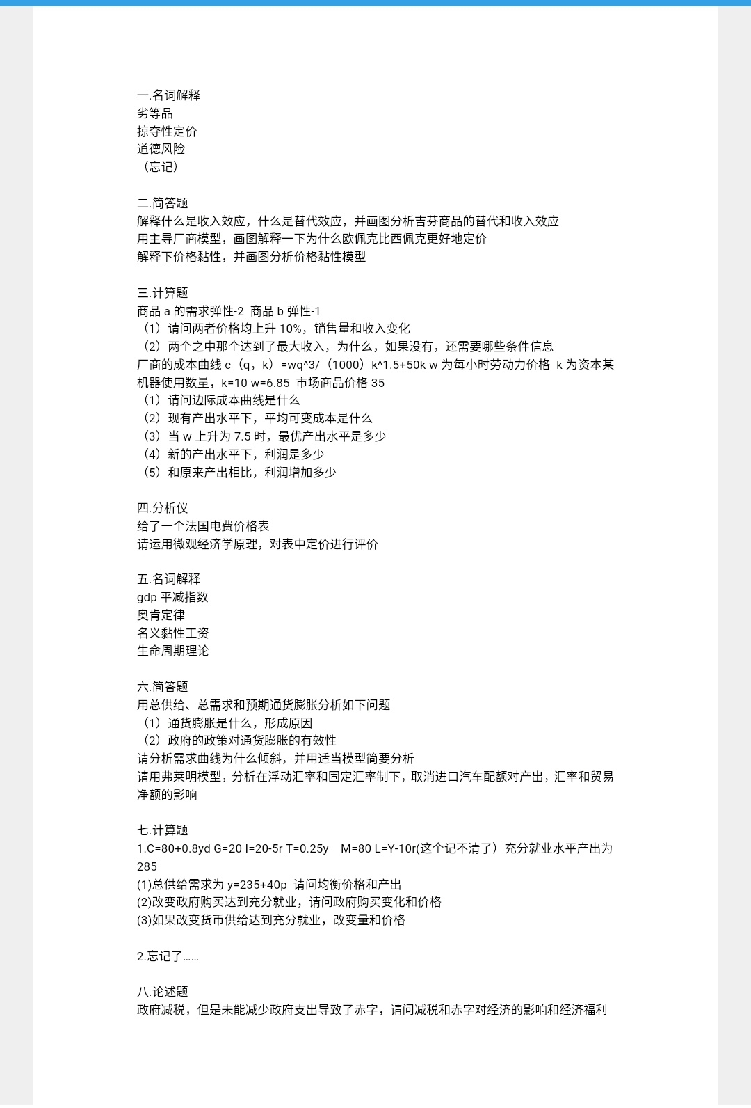 厦门大学考研辅导班:2019年厦门大学宏、微观经济学初试真题回忆(806)