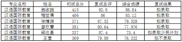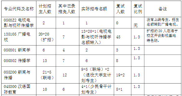 传媒与国际文化学院计划招收汉语国际教育考生10人,其中推免6人,实际统招名额为5人,进入复试6人。