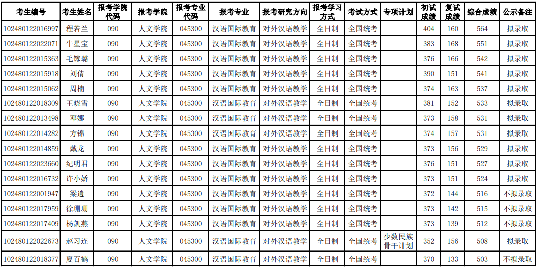 人文学院只有汉语国际教育专业学位接受统考生,专业招生2020年拟招生14人,其中有3个推免名额。