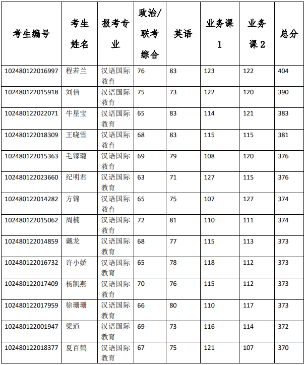初试科目:①101思想政治理论②201英语一③354汉语基础④445汉语国际教育基础(可跨学科报考)
