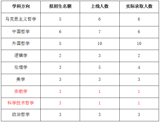 新祥旭提示:20年之前,各专业复试比例不一样,20年合并为哲学专业招生后,按一级学科复试差额比例为122% |