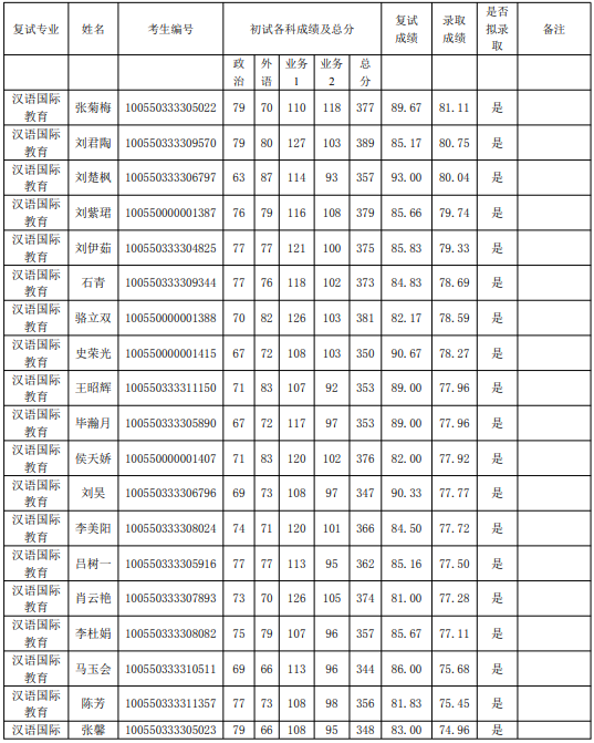 2020年复试名单: