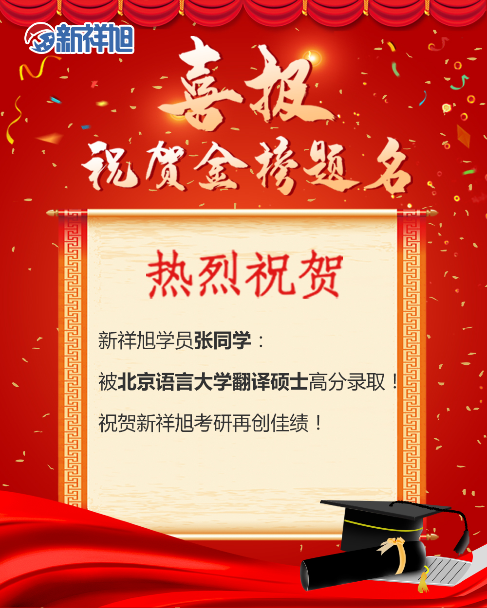 喜报:恭喜新祥旭2020年学员张同学被北京语言大学翻译硕士成功录取