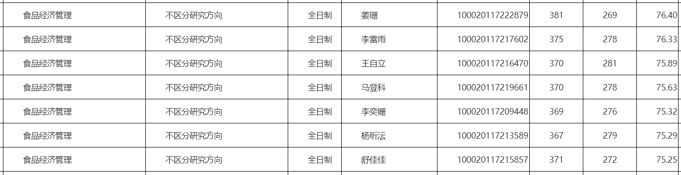 备注:食品经济管理一志愿20年没有招满部分录取学生为调剂