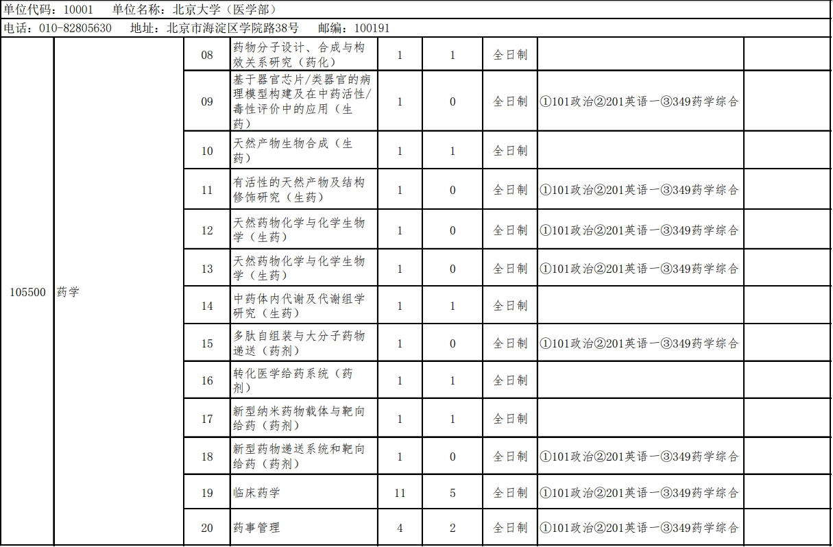 1055药学(专业学位)