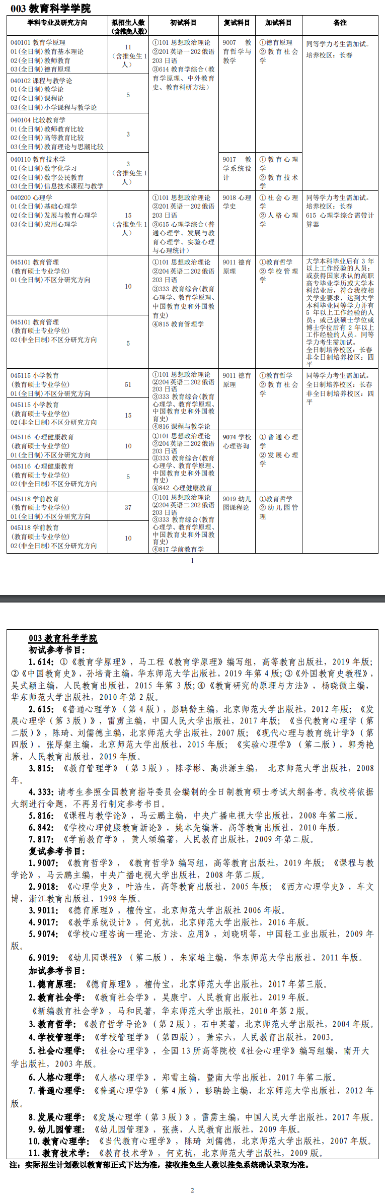 吉师大考研辅导班:吉林师范大学教育科学学院2021年硕士研究生招生专业目录及参考书目