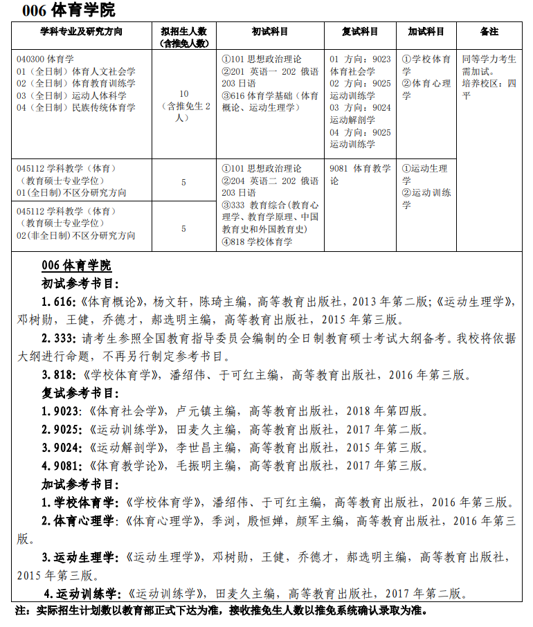 吉师大考研辅导班:吉林师范大学体育学院2021年硕士研究生招生目录及参考书目