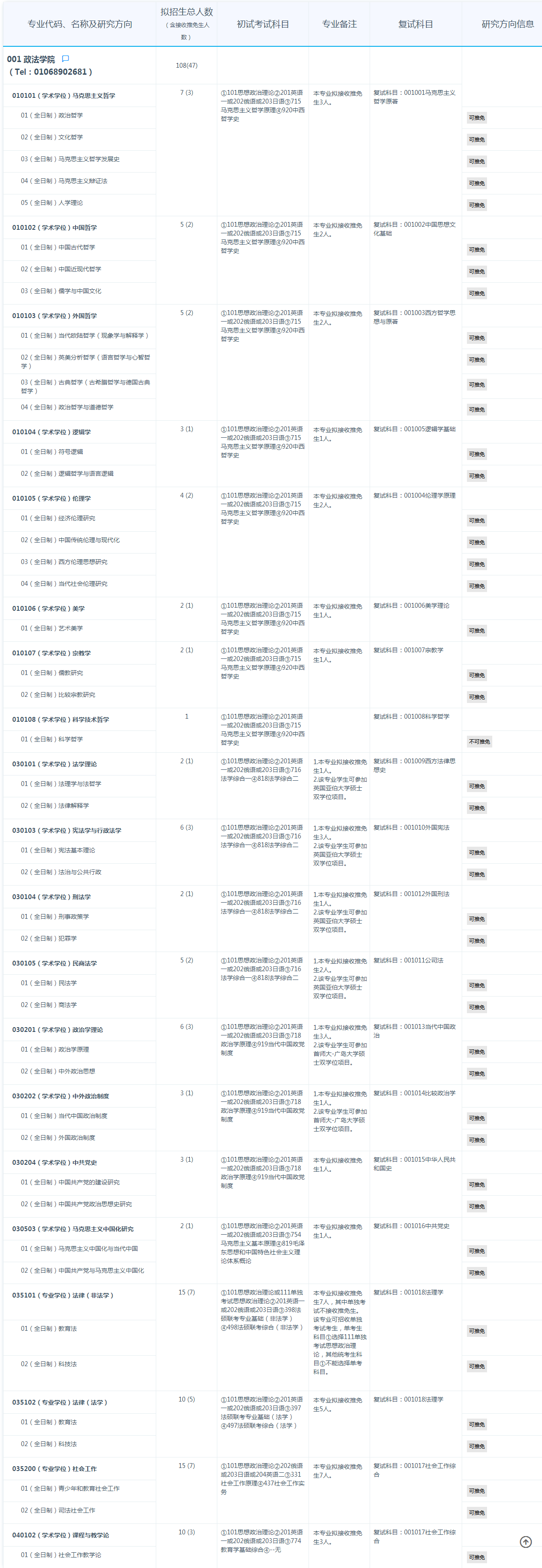首师大考研辅导班:首都师范大学2021年硕士研究生政法学院考研招生目录及招生人数公布