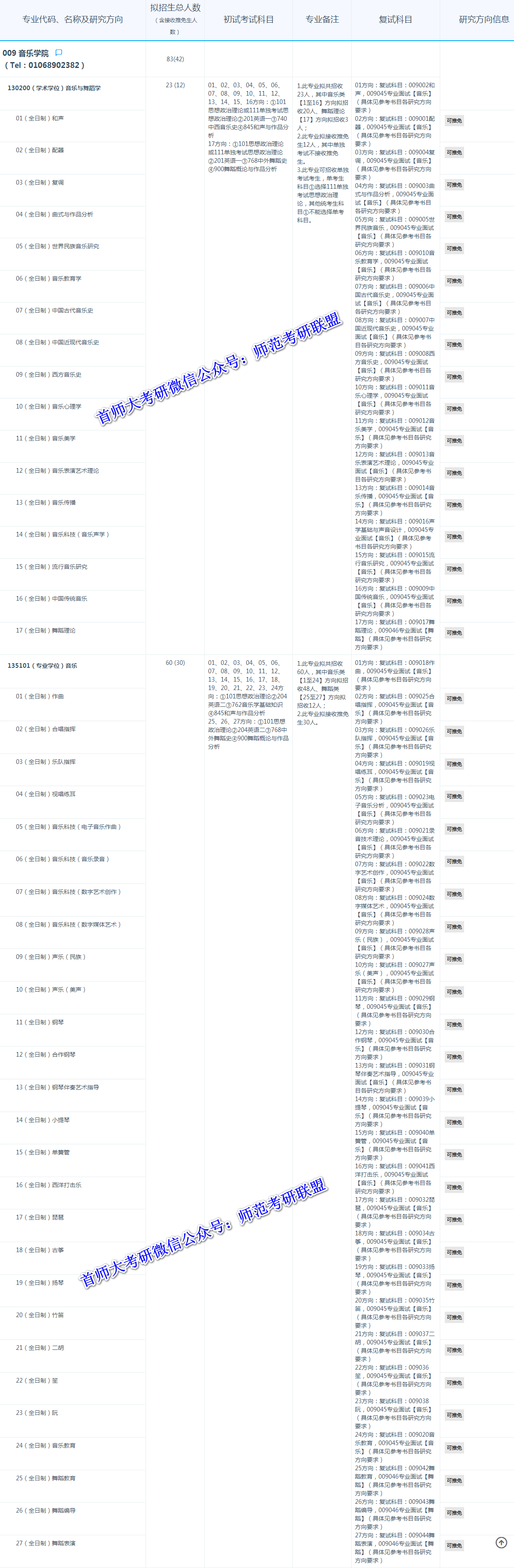 首师大考研辅导班:首都师范大学2021年硕士研究生音乐学院考研招生目录及招生人数公布