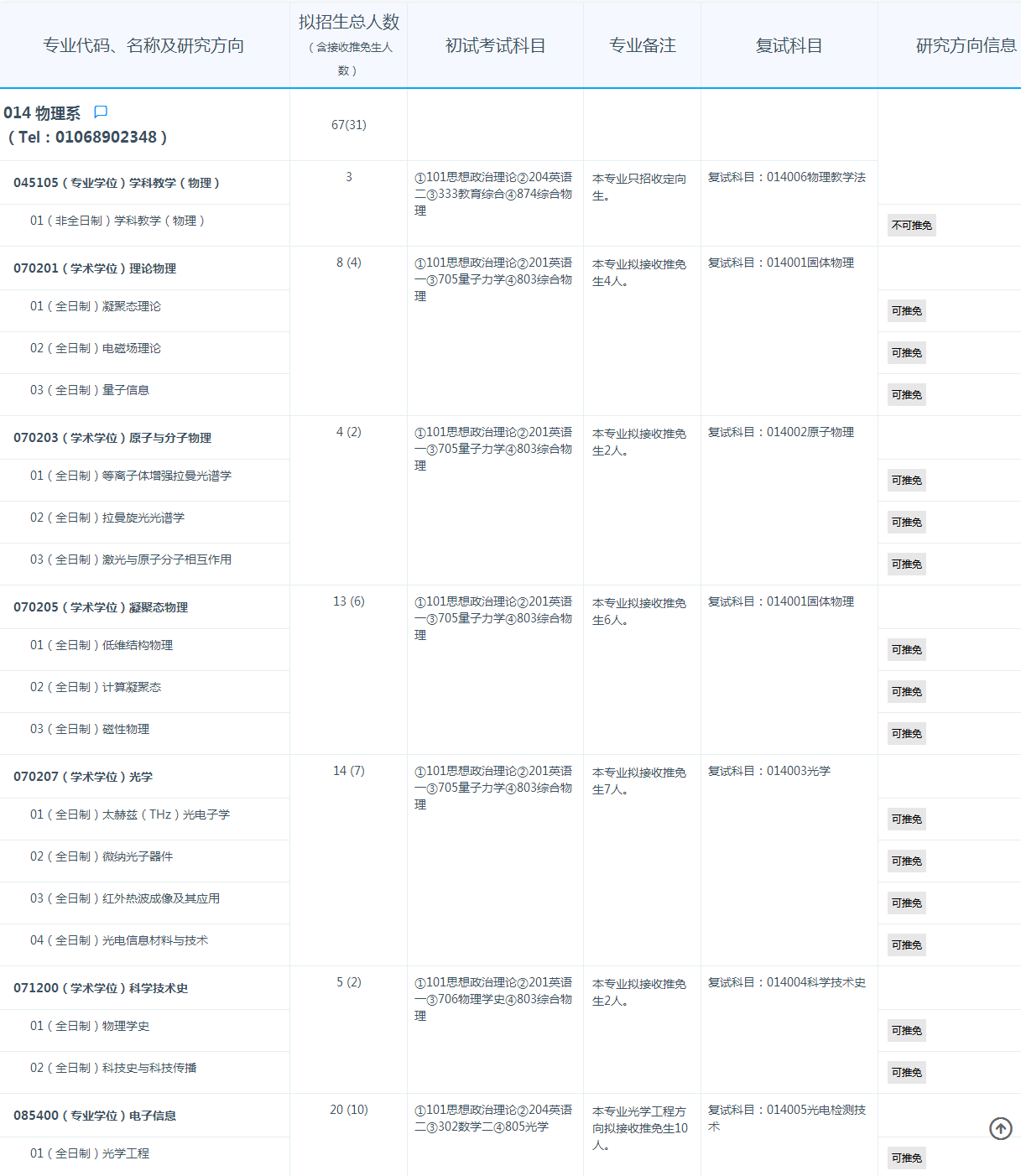 首师大考研辅导班:首都师范大学2021年硕士研究生物理系考研招生目录及招生人数公布