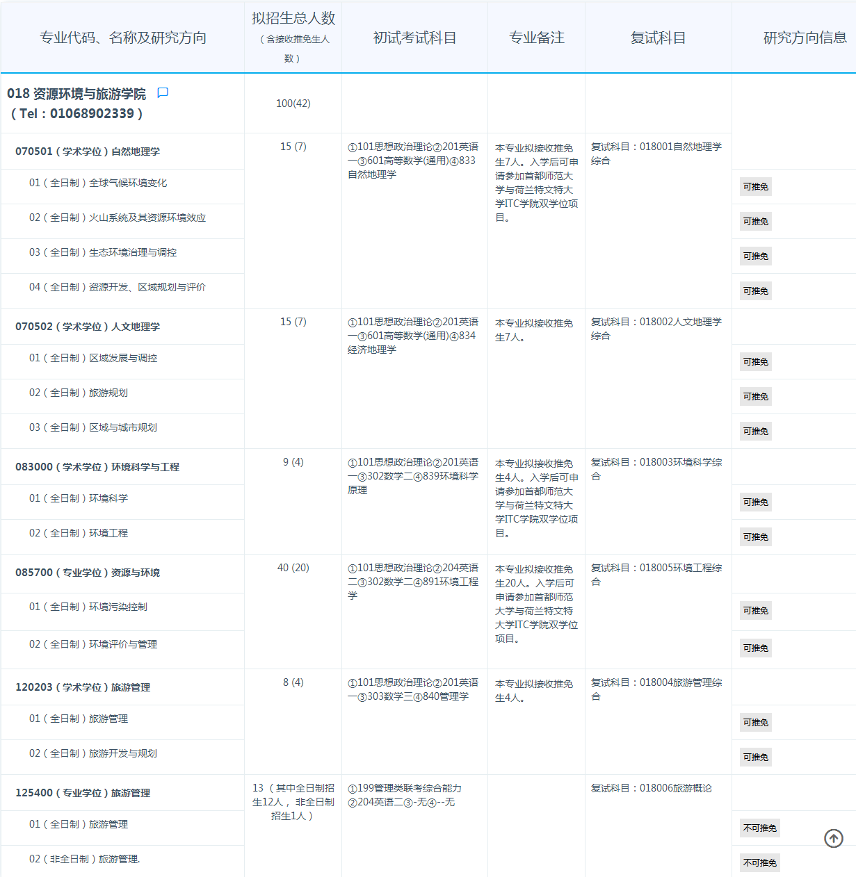 首师大考研辅导班:首都师范大学2021年硕士研究生资源环境与旅游学院考研招生目录及招生人数公布