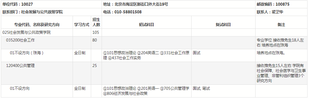 北师大考研辅导班:北京师范大学2021年硕士研究生社会发展与公共政策学院考研招生目录及招生人数公布