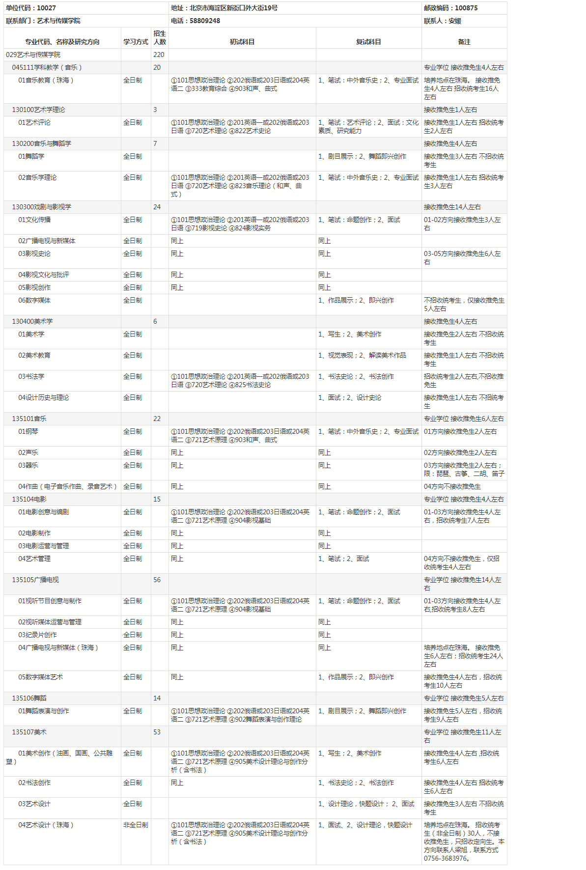 北师大考研辅导班:北京师范大学2021年硕士研究生艺术与传媒学院考研招生目录及招生人数公布